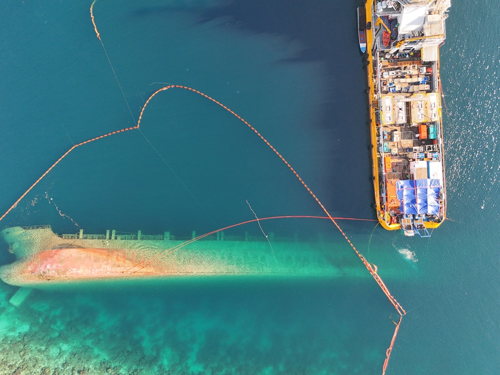A cargo vessel was involved in a collision in Kupang, Indonesia, which resulted in a loss of watertight integrity, eventually causing the vessel to capsize and sink along the coast. There was 70 cubic meters of hydrocarbons reported in 15 tanks located in the engine room. The vessel was sitting on the starboard side shell, on a slope with the aft end in approximately 40 meters of water. Resolve Marine was appointed by the P&I club and their consultants to assist in the recovery of the oils in the engine room tanks using the hot tap method.